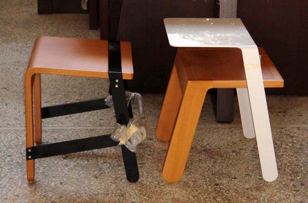 a stool and a side table ready to be wrapped and shipped at Kazakis A.E., Greece