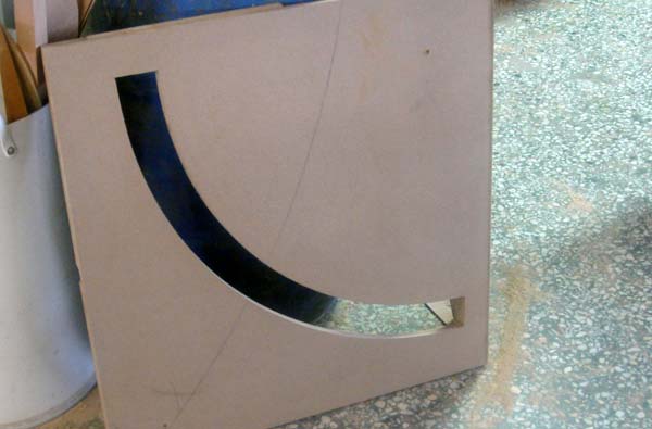 a jig for cutting the grooves at the top of the atrium tables, at Kazakis A.E., Greece