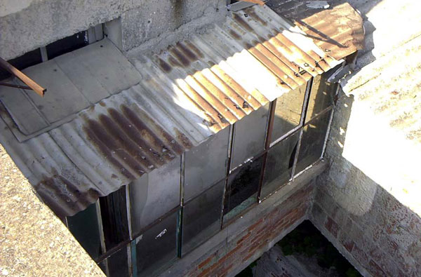 The house before - view of old back terrasse from roof - old toilet on far right